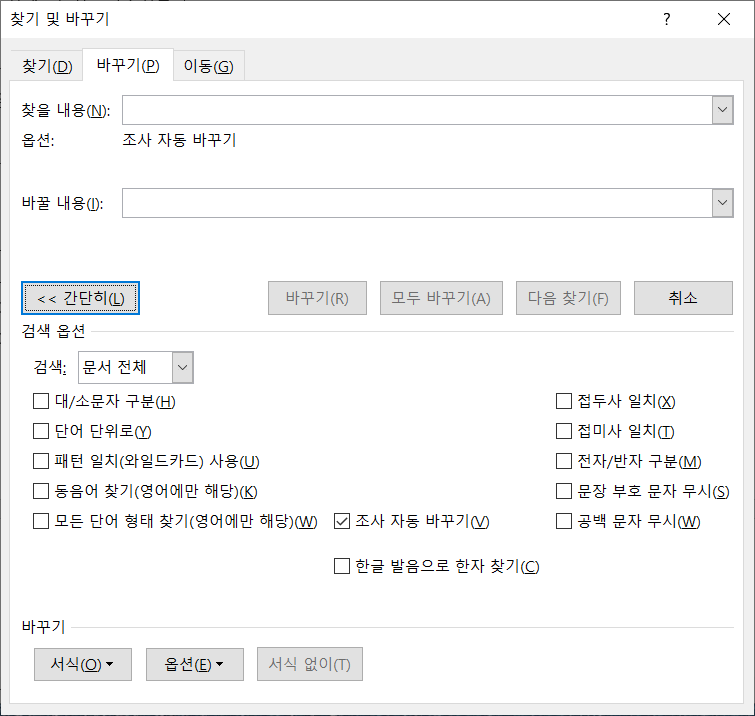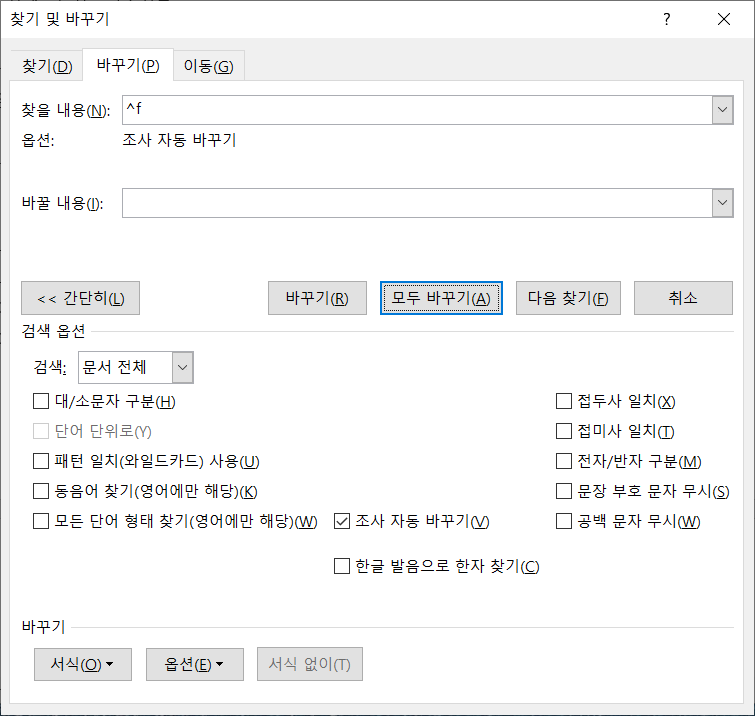 [모두 바꾸기]를 누릅니다.