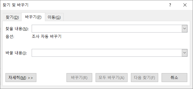 [홈]-[편집]-[바꾸기]를 선택합니다. 또는 <Ctrl + H>를 누릅니다.