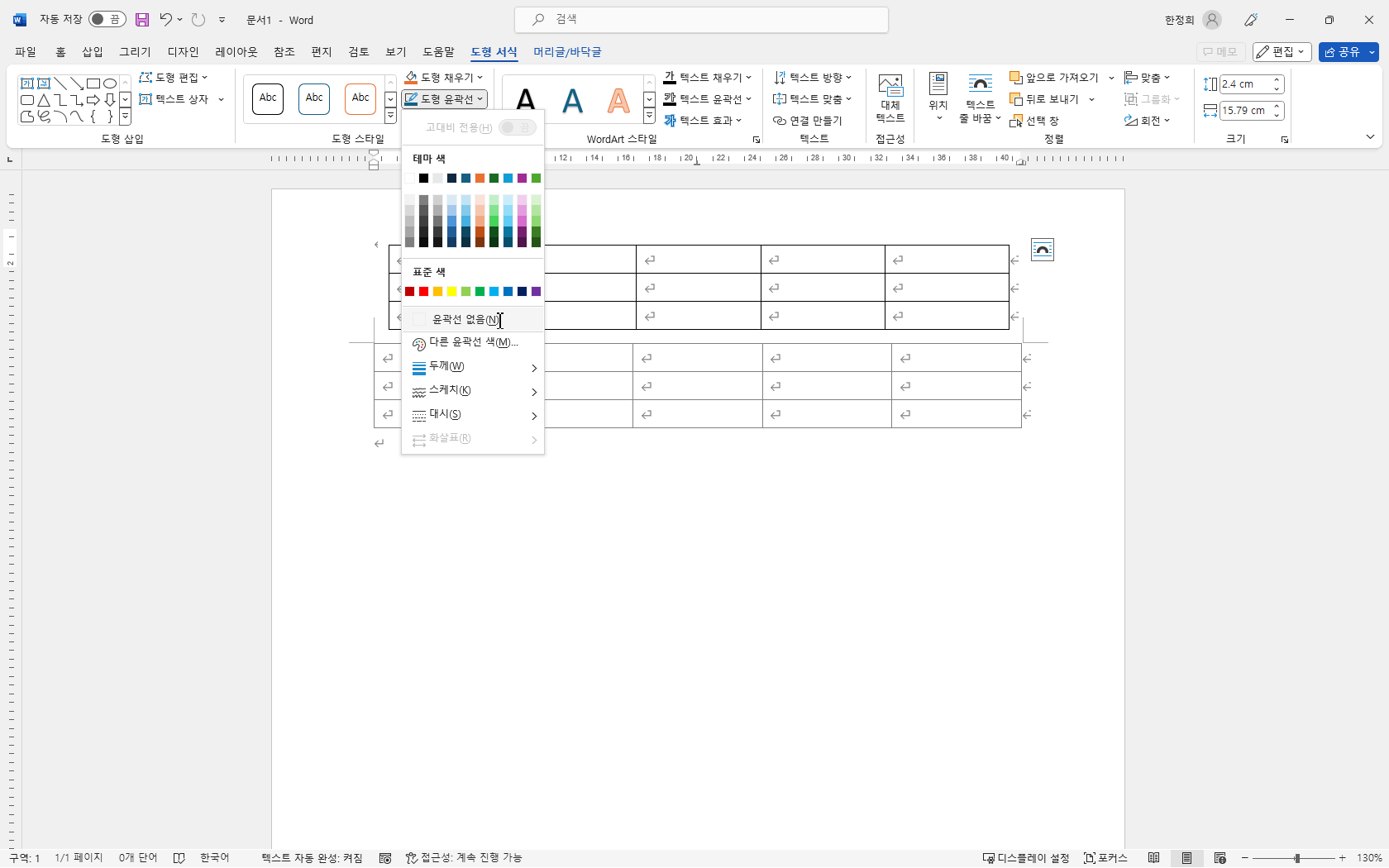 도형 윤곽선 없음은 제일 마지막에 설정하는 것이 좋습니다.