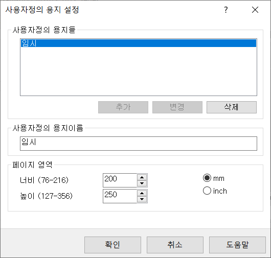 원하는 너비와 높이로 지정하고 용지 이름을 지정해 추가합니다.