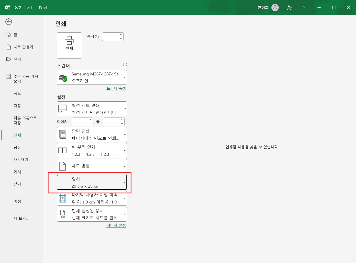 추가한 용지가 엑셀에 표시됩니다.