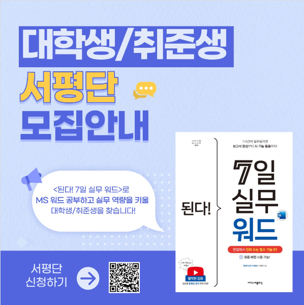 《된다! 7일 실무 워드》로 MS 워드 공부하고 실무 역량을 키울 대학생/취준생 서평단을 모집합니다.